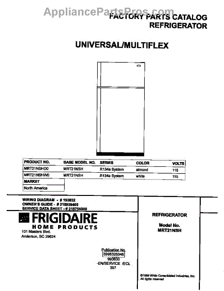 Parts for Frigidaire MRT21NSHW0: 01 - Cover Parts