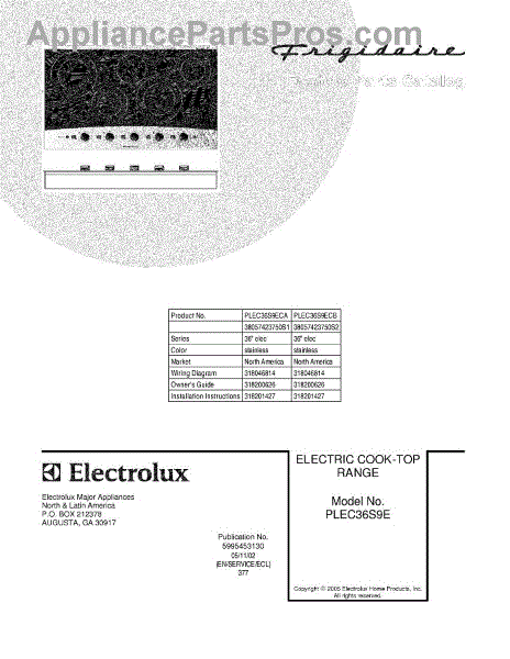 Parts for Frigidaire PLEC36S9ECB: 01 - Cover Parts