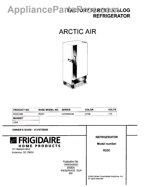 Parts for Frigidaire R22CW8: 01 - Cover Parts