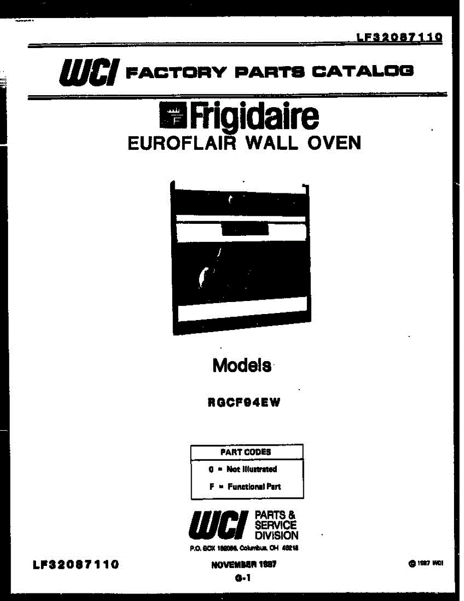 Parts for Frigidaire RGCF94EW BLACK: 01 - Cover Parts