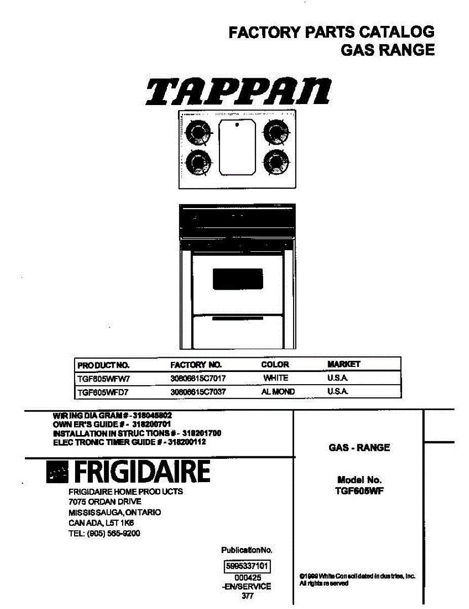 Parts for Frigidaire TGF605WFD7: 01 - Cover Parts