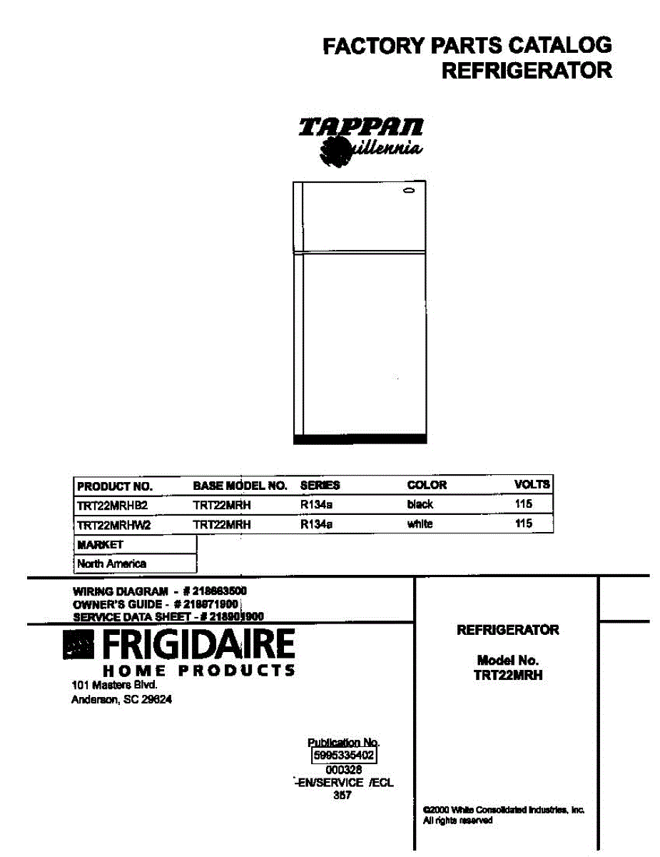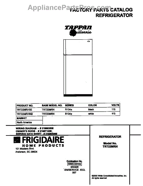 Parts for Frigidaire TRT22MRHW2: 01 - Cover Parts
