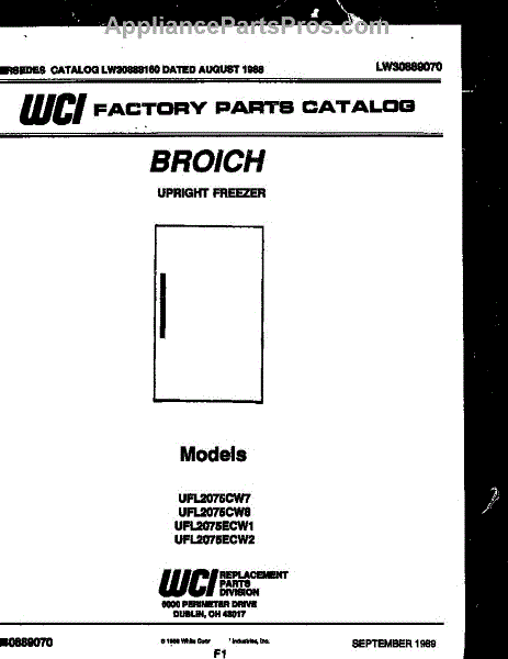 Parts for Frigidaire UFL2075CW7: 01 - Cover Parts
