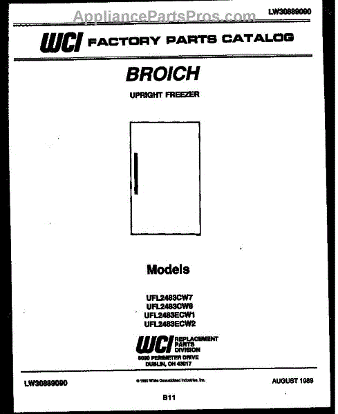 Parts for Frigidaire UFL2483CW7: 01 - Cover Parts