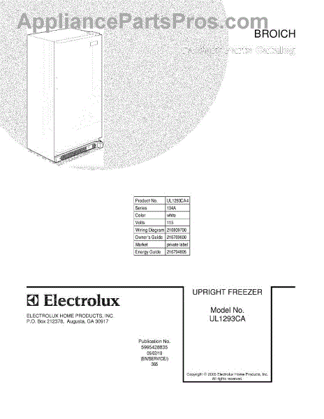 Parts for Frigidaire UL1293CA4: 01 - Cover Parts