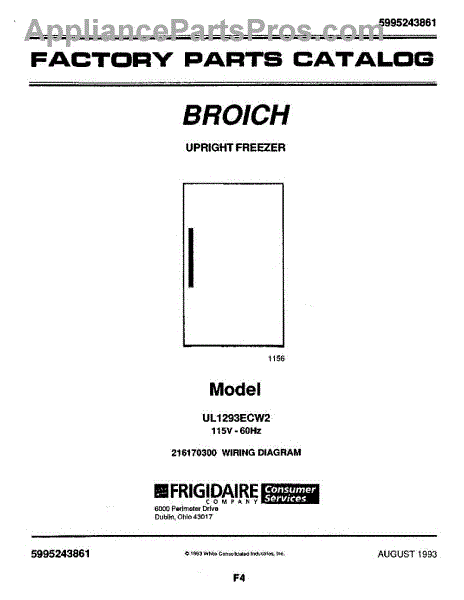 Parts for Frigidaire UL1293ECW2: 01 - Cover Parts