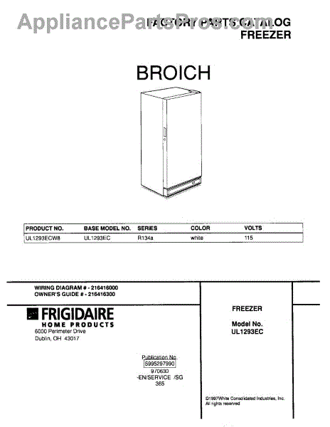 Parts for Frigidaire UL1293ECW8: 01 - Cover Parts