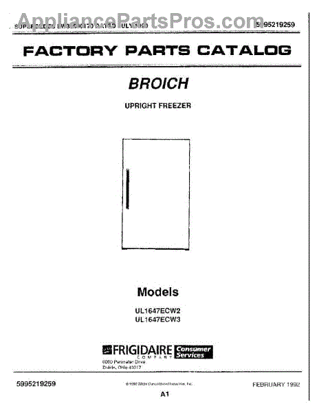 Parts for Frigidaire UL1647ECW2: 01 - Cover Parts