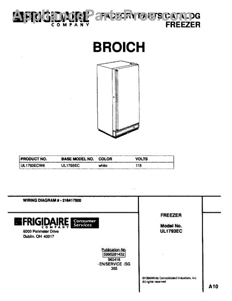 Parts for Frigidaire UL1793ECW6: 01 - Cover Parts
