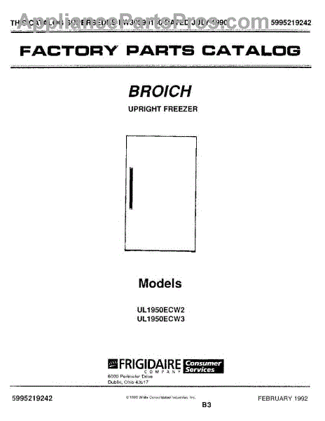 Parts for Frigidaire UL1950ECW2: 01 - Cover Parts