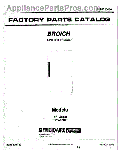 Parts for Frigidaire UL19AHGD: 01 - Cover Parts