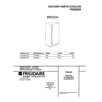 Parts for Frigidaire UL2030ECW13: 01 - Cover Parts