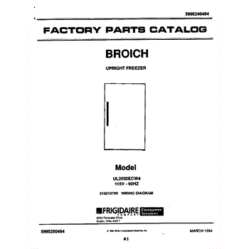 Parts for Frigidaire UL2030ECW4: 01 - Cover Parts