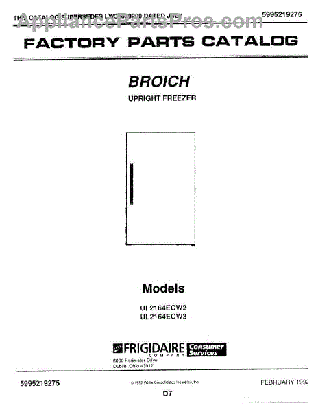 Parts for Frigidaire UL2164ECW3: 01 - Cover Parts
