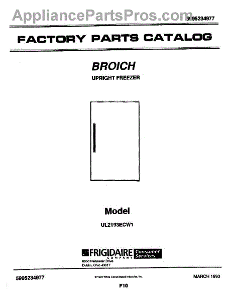 Parts for Frigidaire UL2193ECW1: 01 - Cover Parts