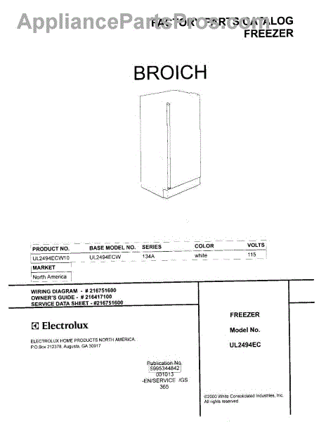 Parts for Frigidaire UL2494ECW10: 01 - Cover Parts
