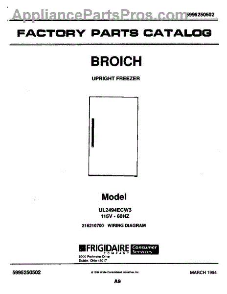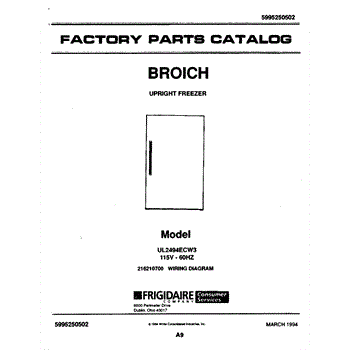 Parts for Frigidaire UL2494ECW3: 01 - Cover Parts