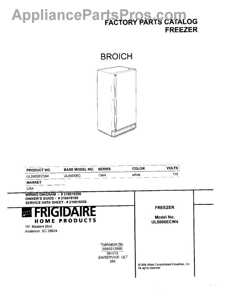 Parts for Frigidaire UL5000ECW4: 01 - Cover Parts