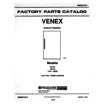 Parts for Frigidaire VR161: 01 - Cover Parts