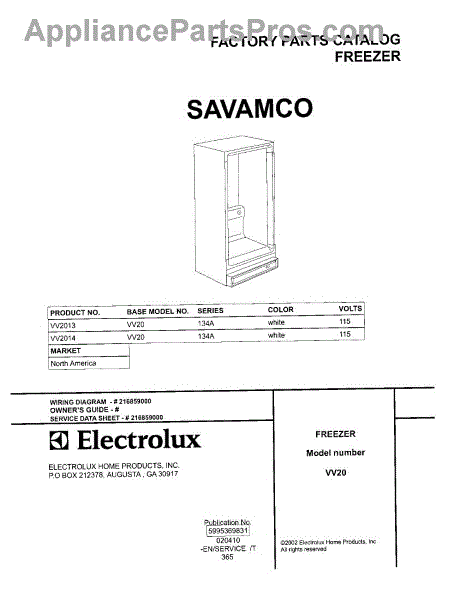 Parts for Frigidaire VV2014: 01 - Cover Parts