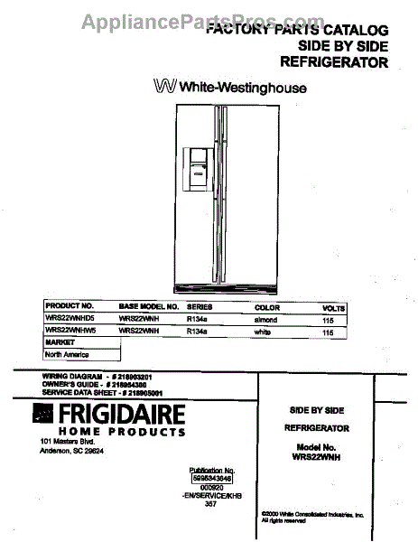 Parts for Frigidaire WRS22WNHW5: 01 - Cover Parts