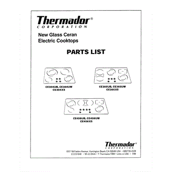 Parts for Thermador CE456UB: 01 - Cover Parts