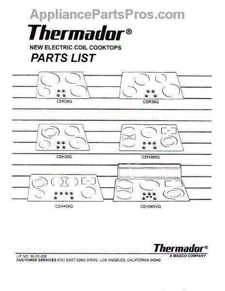 Parts for Thermador CEH30QB: 01 - Cover Parts