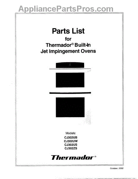 Parts for Thermador CJ302US: 01 - Cover Parts