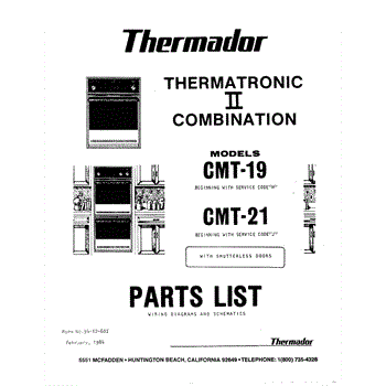 Parts for Thermador CMT-19 SERVICE CODE H & UP: 01 - Cover Parts