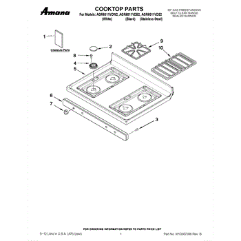 Parts for Thermador CMT-21 SERVICE CODE J & UP: 01 - Cover Parts