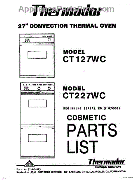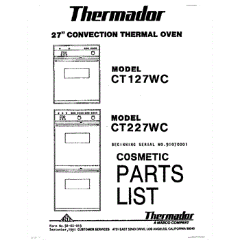 Parts for Thermador CT127WC: 01 - Cover Parts