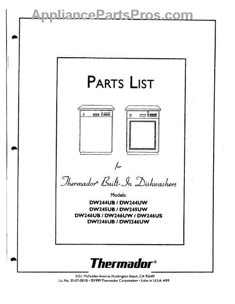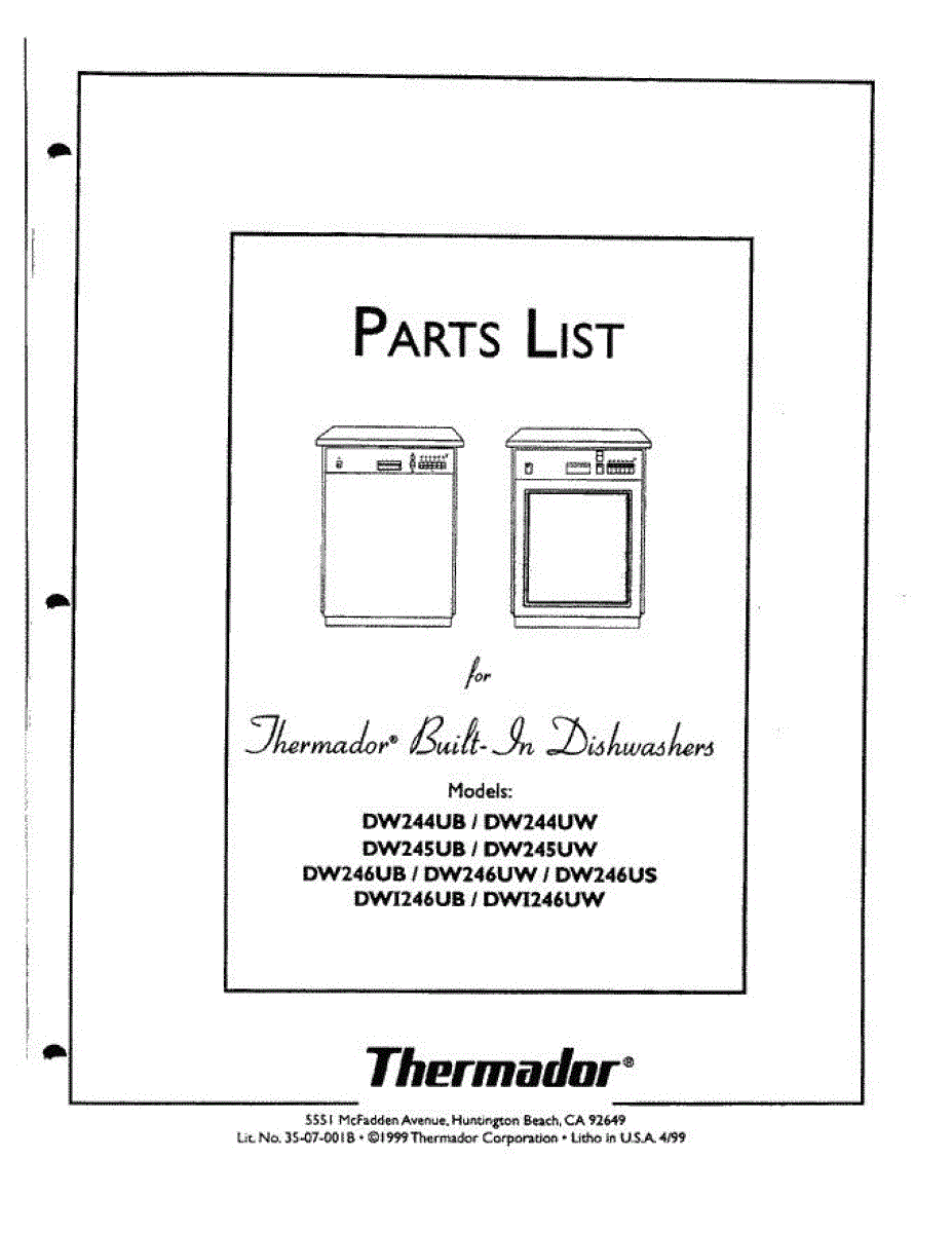 Parts for Thermador DW244UB: 01 - Cover Parts