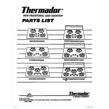 Parts for Thermador GGN30W: 01 - Cover Parts