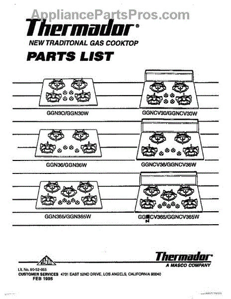 Parts for Thermador GGN365W: 01 - Cover Parts
