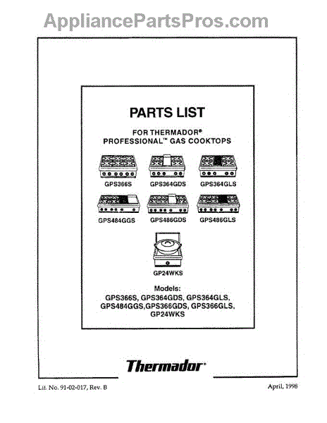 Parts for Thermador GP24WKS: 01 - Cover Parts