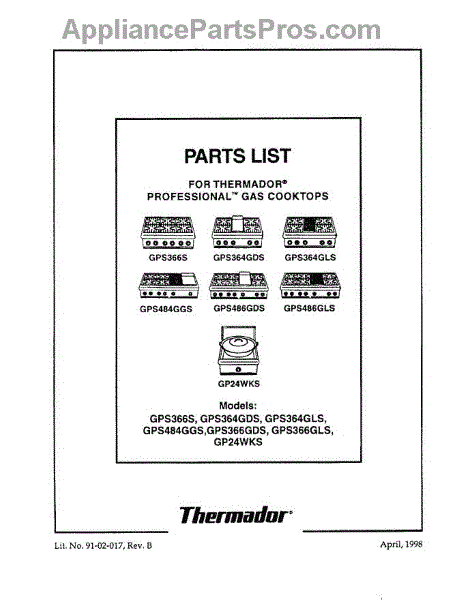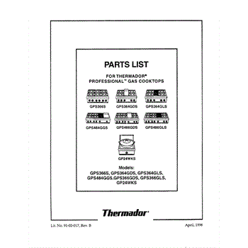 Parts for Thermador GPS366S: 01 - Cover Parts