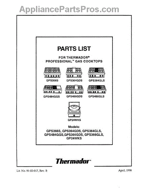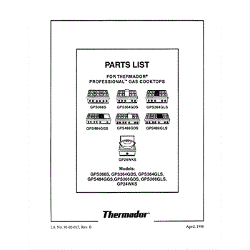 Parts for Thermador GPS486GLS: 01 - Cover Parts