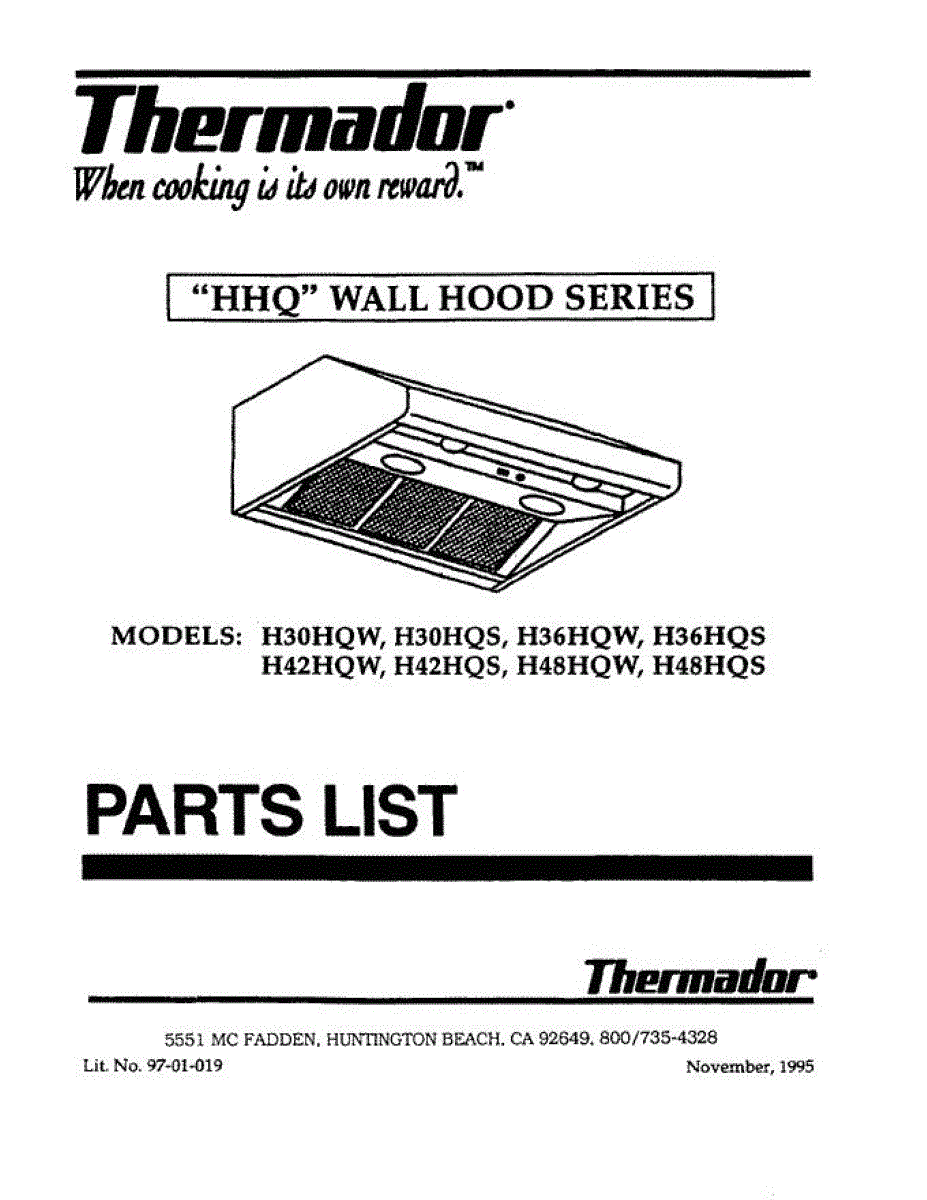 Parts for Thermador H42HQS: 01 - Cover Parts