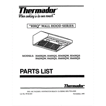 Parts for Thermador H42HQW: 01 - Cover Parts