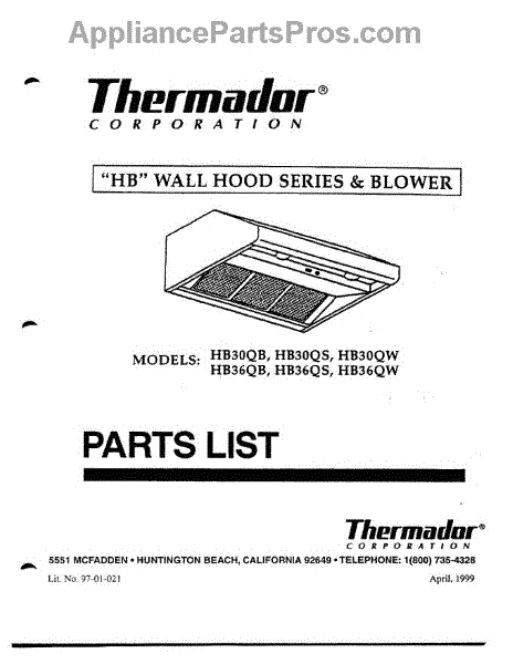 Thermador Range Hood Parts