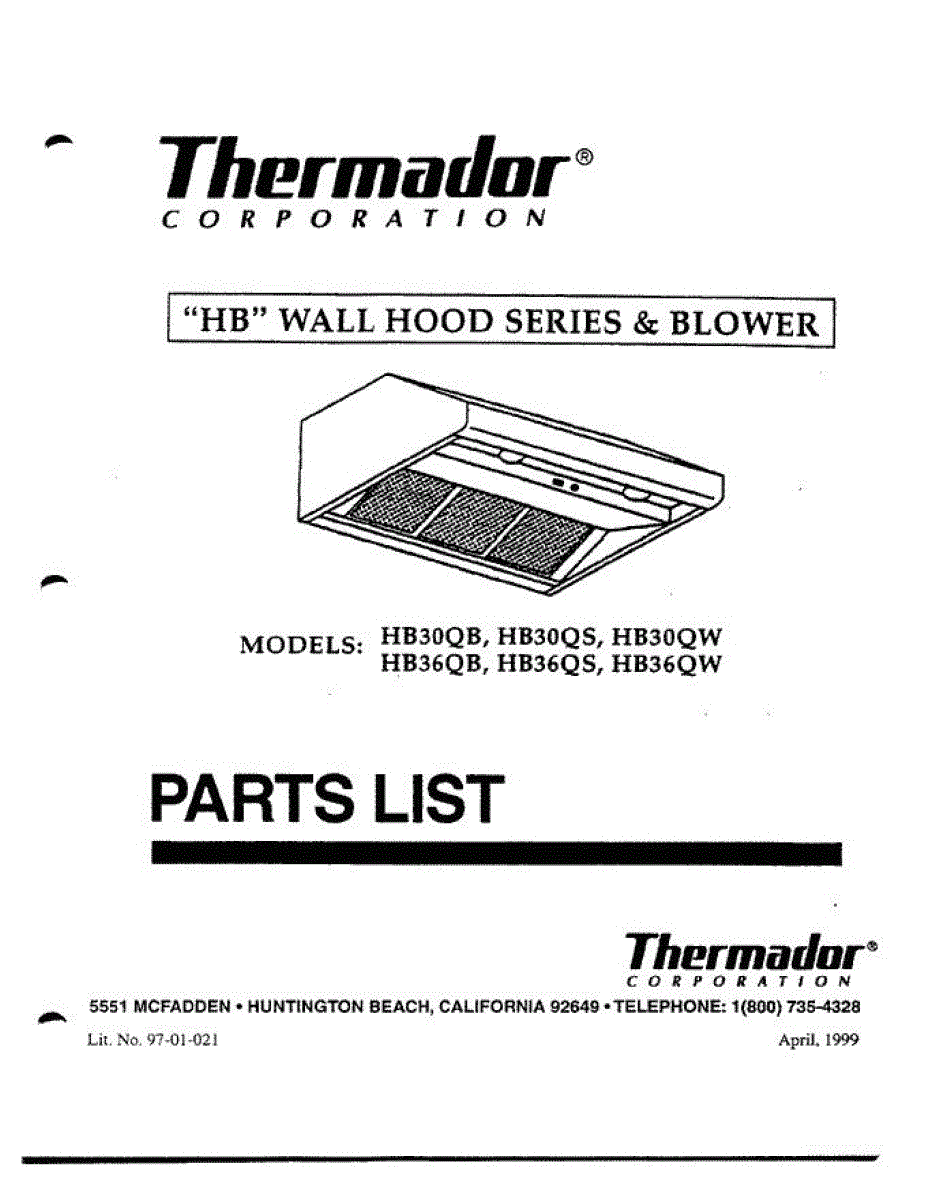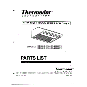Parts for Thermador HB36QW: 01 - Cover Parts