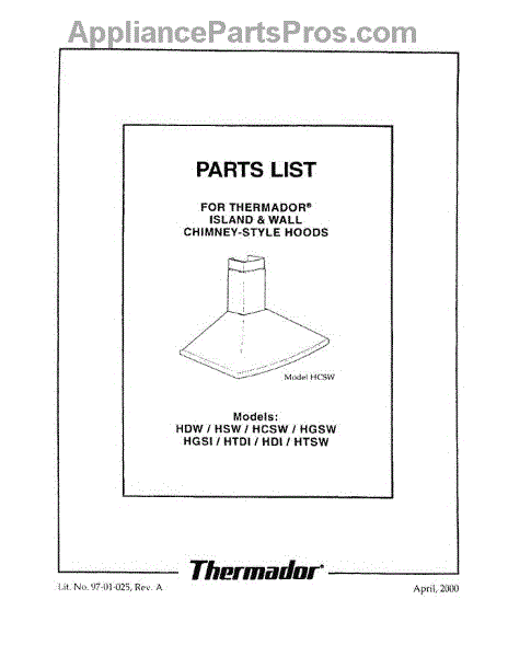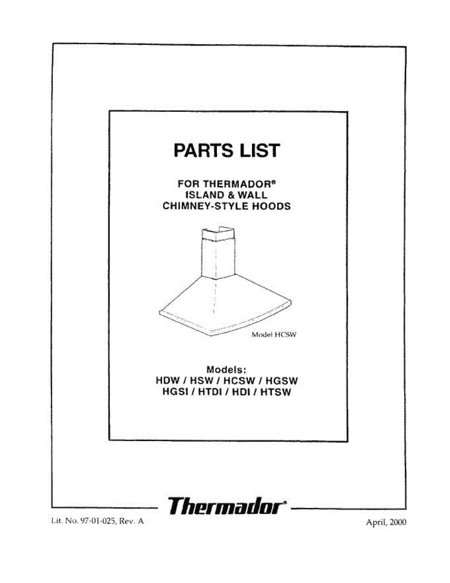 Parts for Thermador HCSW36TW: 01 - Cover Parts