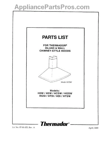 Parts for Thermador HDI54TS: 01 - Cover Parts