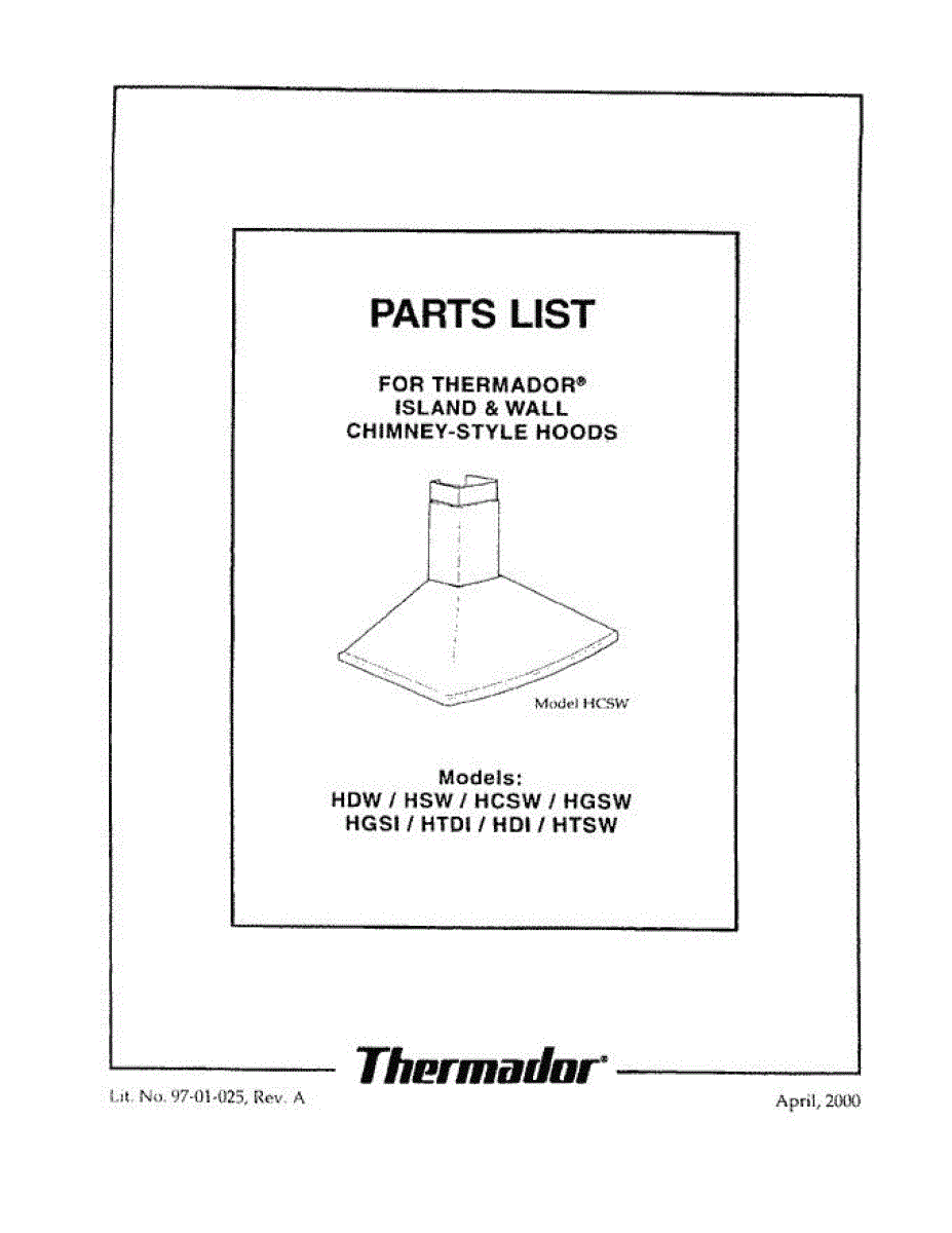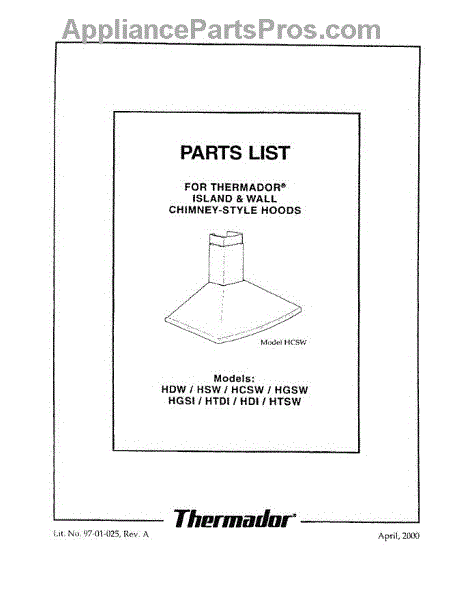 Parts for Thermador HGSW36TS: 01 - Cover Parts