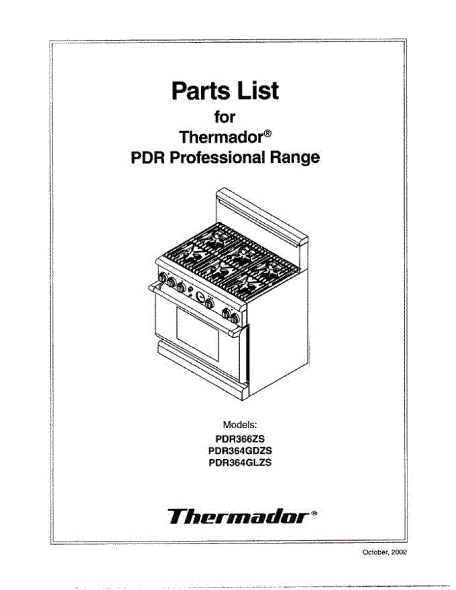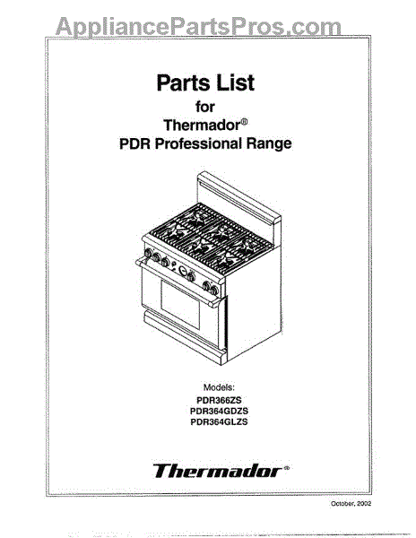 Parts for Thermador PDR364GLZS: 01 - Cover Parts