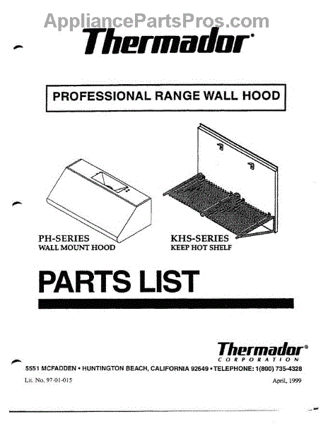 Parts for Thermador PH36HQS: 01 - Cover Parts