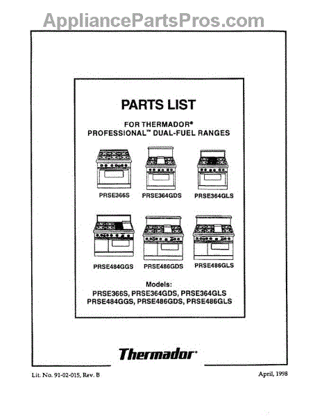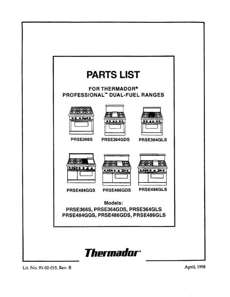 Parts for Thermador PRSE364GLS: 01 - Cover Parts
