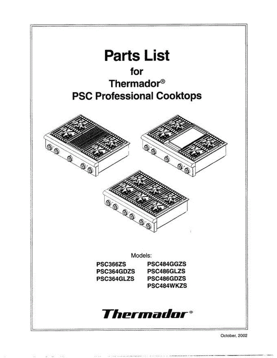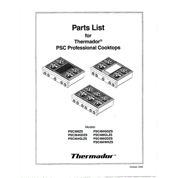 Parts for Thermador PSC364GDZS: 01 - Cover Parts