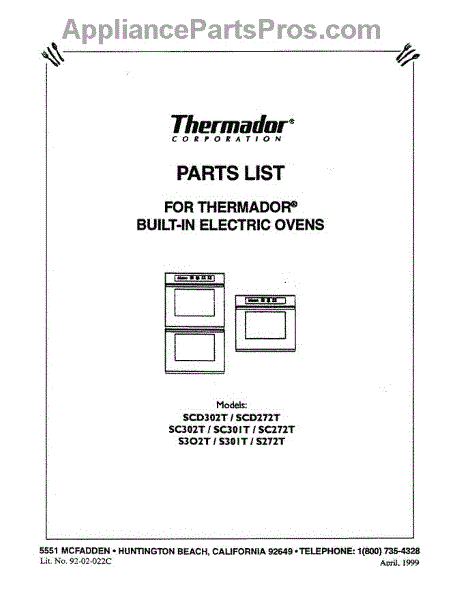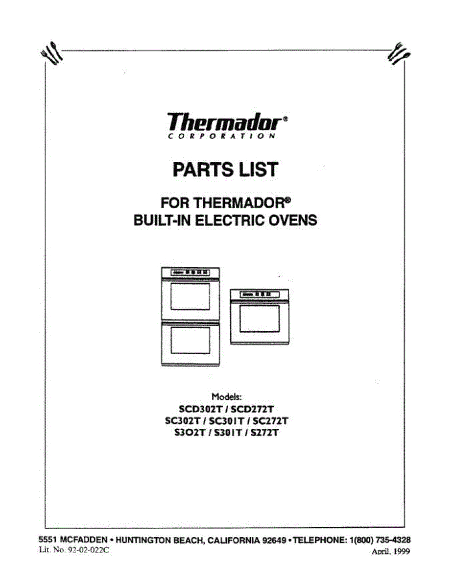 Parts for Thermador SCD272T: 01 - Cover Parts