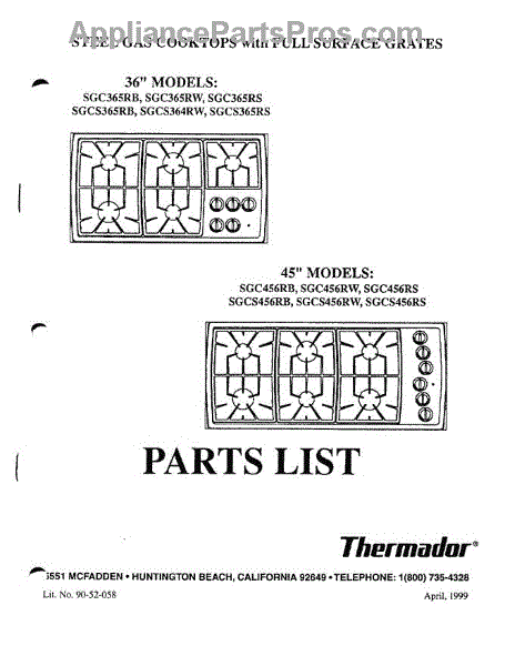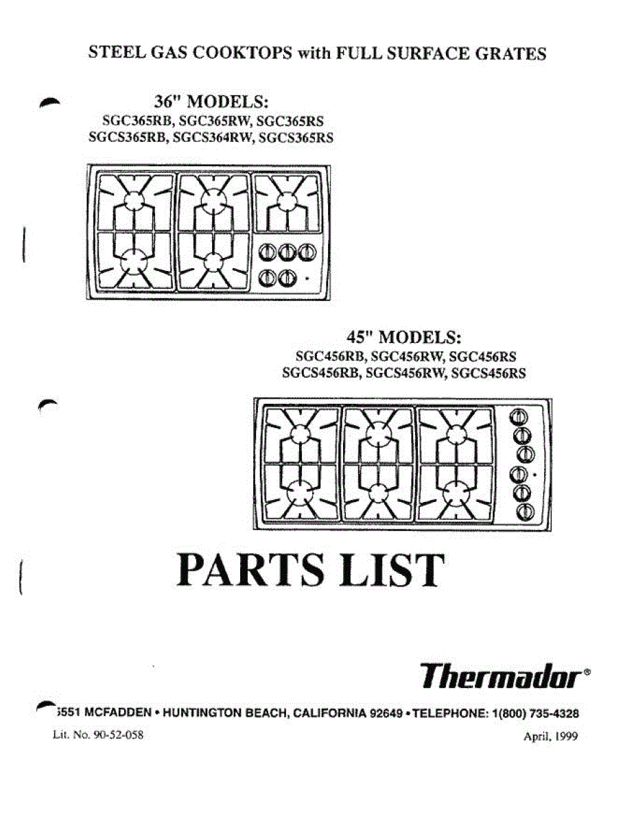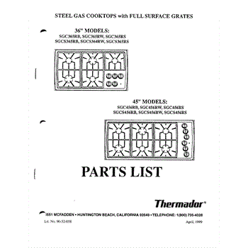 Parts for Thermador SGC456RW: 01 - Cover Parts